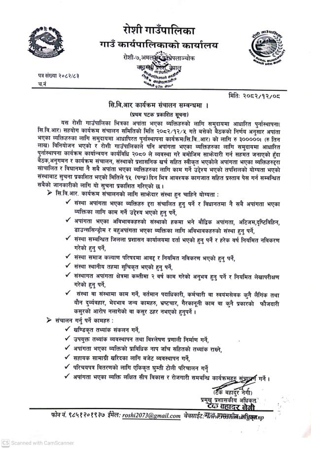 सि.वि.आर कार्यक्रम संचालन सम्बन्धी सूचना ।